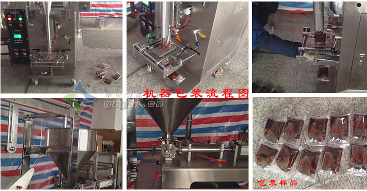 4、適用于有流動性的液體及粘性液體、如果醬、面醬、辣椒醬等多種液體和膏體的定量灌裝及全自動包裝;