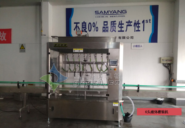 防凍液灌裝生產(chǎn)線前短設(shè)備--6頭液體灌裝機